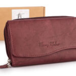 Duży damski portfel burgundowy uszyty z miękkiej i przyjemnej w dotyku skóry naturalnej RFID