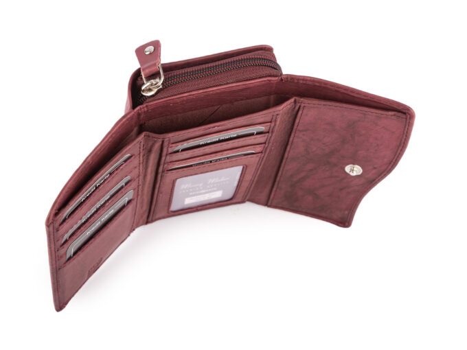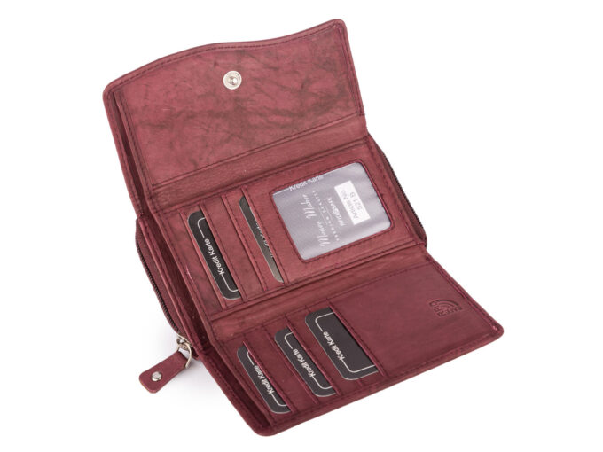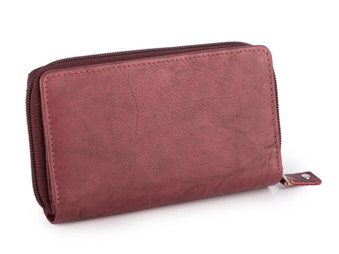 - Duży damski portfel burgundowy uszyty z miękkiej i przyjemnej w dotyku skóry naturalnej.