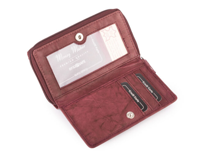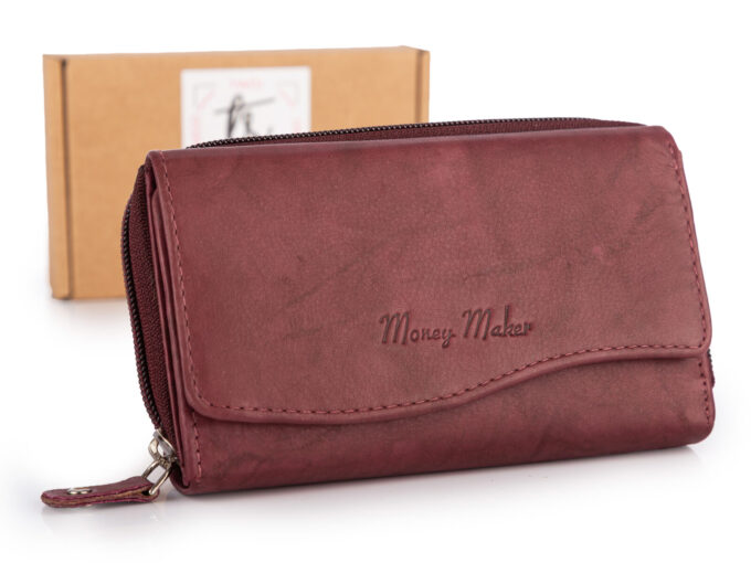 Portfel damski czerwony z matowej skóry naturalnej duży Money Maker