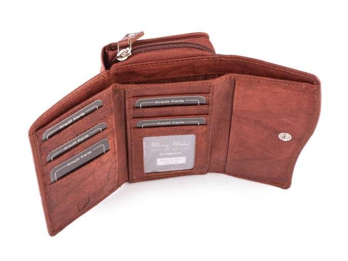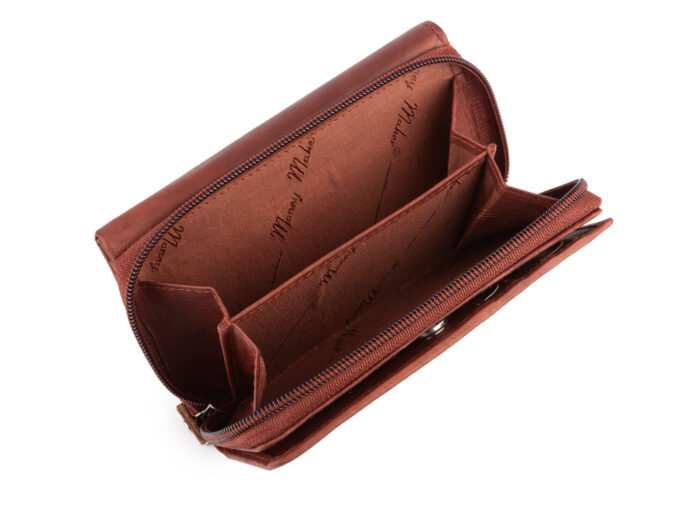 - Portfel zapinany jest na mocny, metalowy zatrzask.