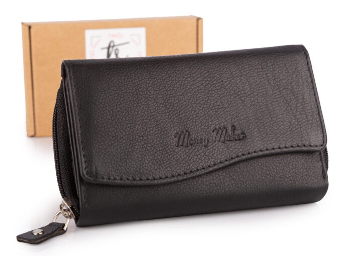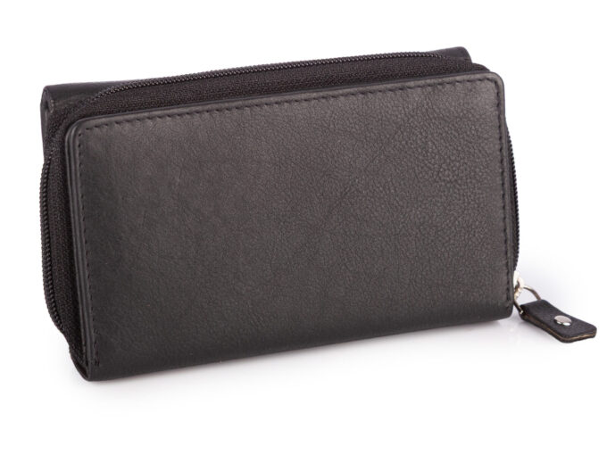 - Duży damski portfel czarny uszyty z miękkiej i przyjemnej w dotyku skóry naturalnej.