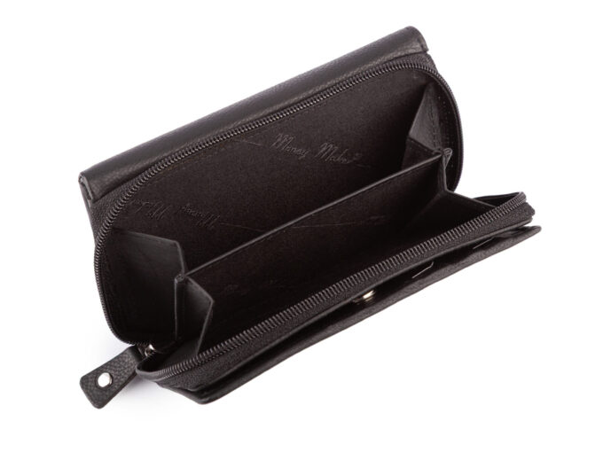 - Duża kieszeń na monety, podzielona na dwie części i zapinana szczelnie na zamek błyskawiczny.