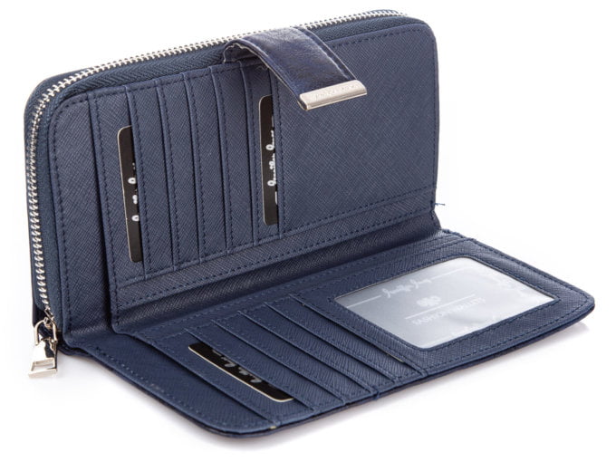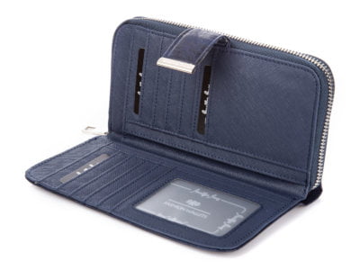 • Matowe portfele damskie, Duże portfele damskie, Portfele damskie typu piórnik, Niebieskie portfele damskie, Portfele damskie Jennifer Jones, Portfele damskie w pudełku