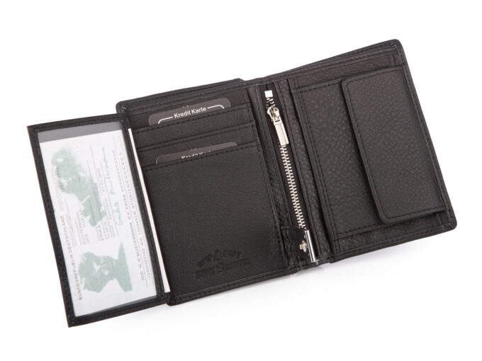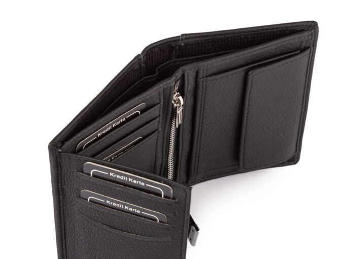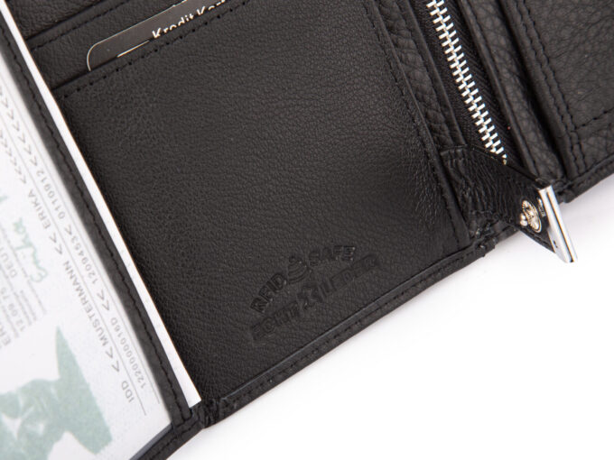 - Portfel z ochroną RFID blokujacą dostęp do kart zbliżeniowych znajdujących się w środku.