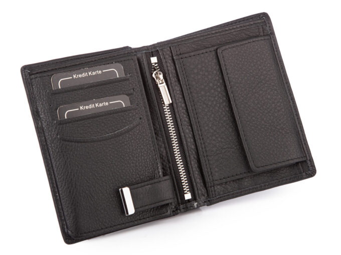 - Duży, pionowy, czarny portfel męski skórzany, klasyczny z ochroną kart RFID.