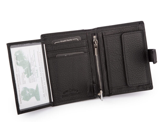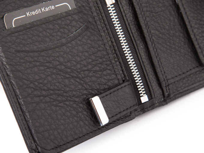 - Portfel z ochroną RFID blokujacą dostęp do kart zbliżeniowych znajdujących się w środku.