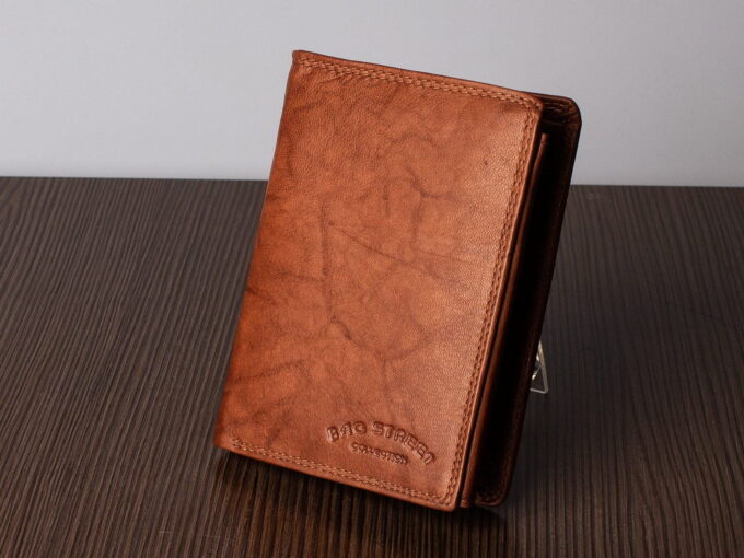 • Duży pionowy portfel męski skórzany jasny brąz Bag Street