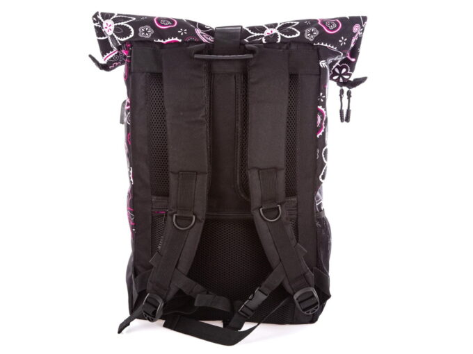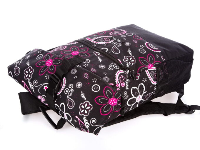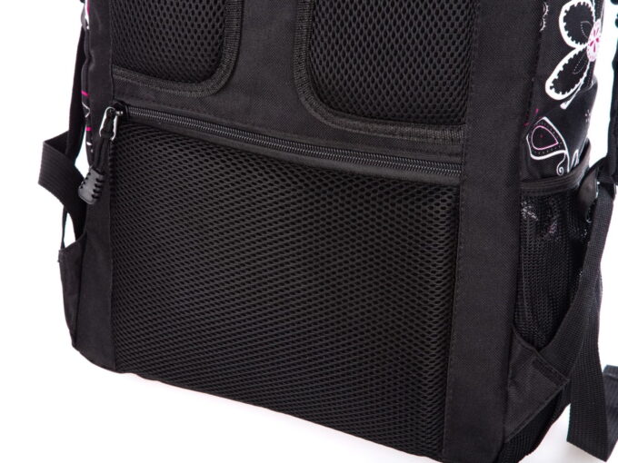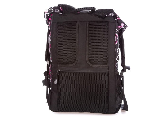 - Tył plecaka oraz szelki wyłożone są miękką pianką ograniczającą pocenie oraz zwiększającą komfort noszenia,