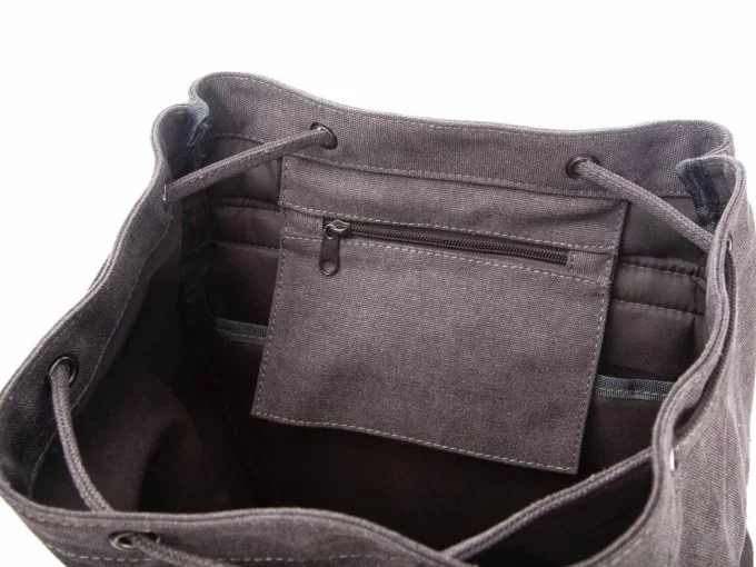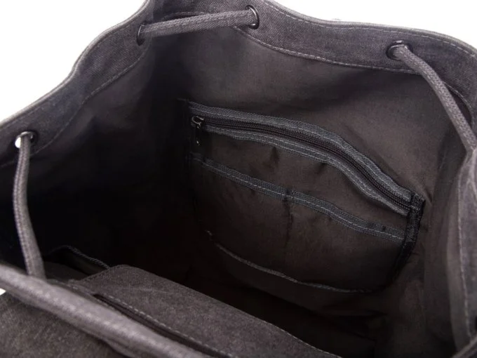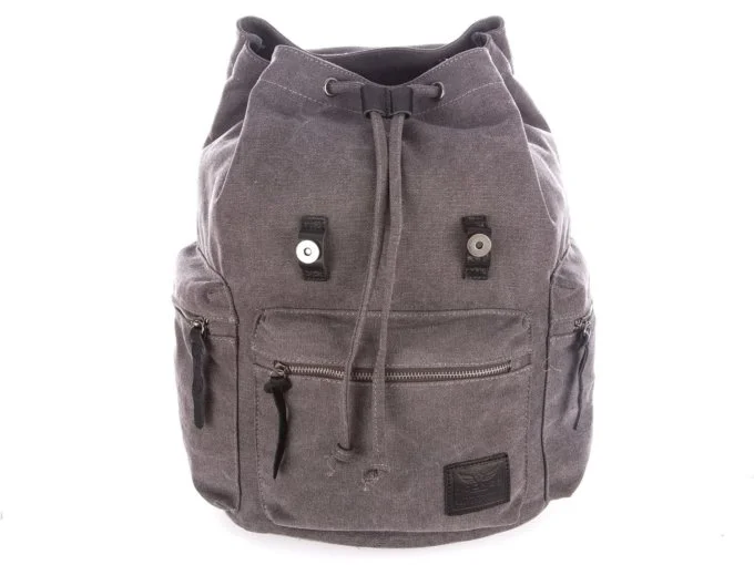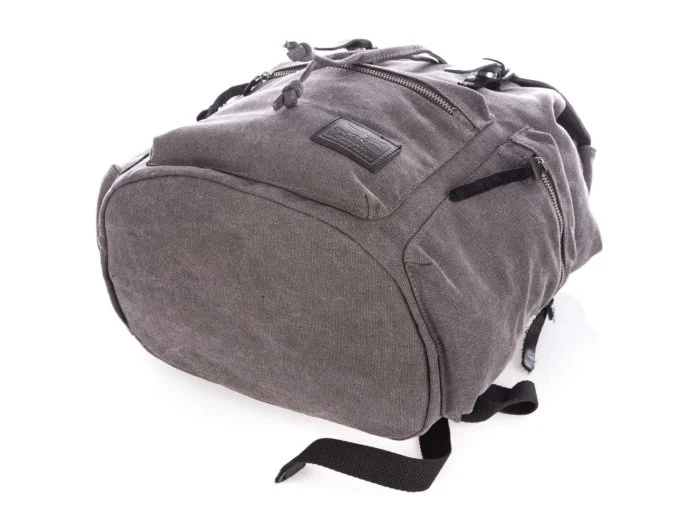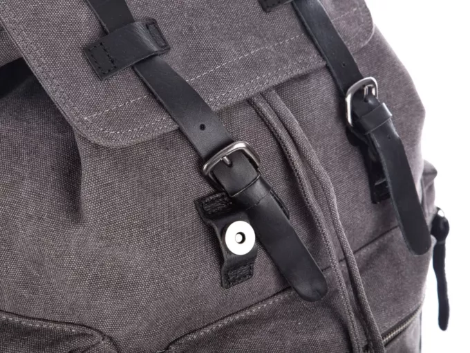 • Duży szary plecak vintage wykonany z mocnego canvasu (płótna) połączonego z elementami ze skóry naturalnej.