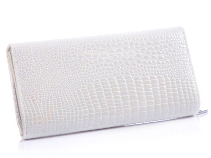Duży portfel damski biały lakierowany croco Jennifer Jones