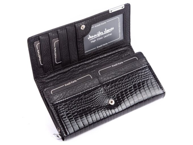 Kategorie: Czarne portfele damskie, Duże portfele damskie, Lakierowane portfele damskie, Portfele damskie, Portfele damskie Jennifer Jones, Portfele damskie w pudełku