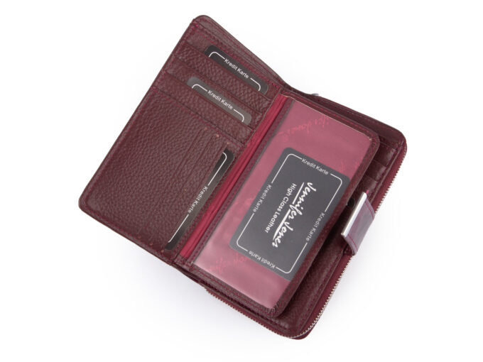 Gładki czerwony skórzany portfel damski Money Maker