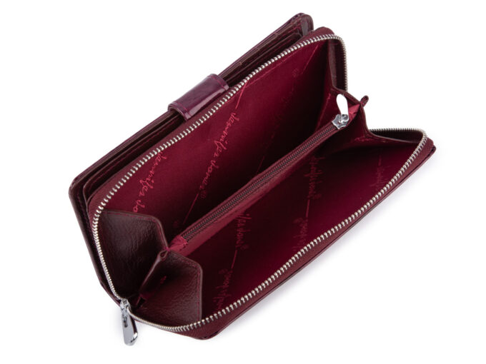 Bordowy portfel damski lakierowany Jennifer Jones duży RFID