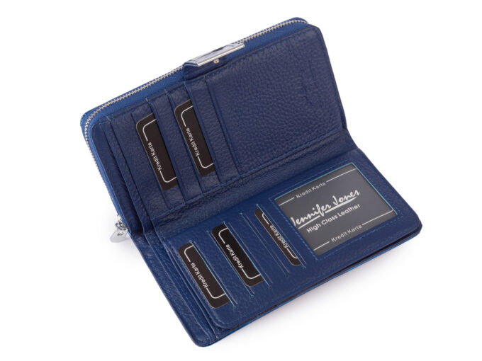 Duży portfel damski niebieski lakierowany Jennifer Jones