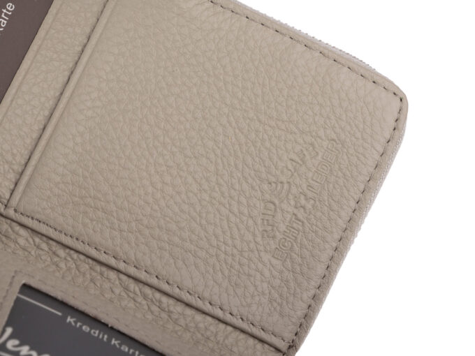 - Zabezpieczenie kart RFID, chroniące znajdujące się wewnątrz portfela karty zbliżeniowe przed dostępem z zewnątrz.