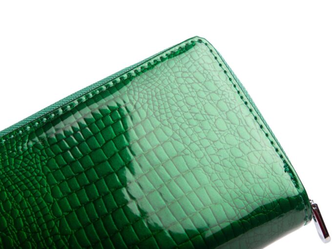Portfel damski lakierowany w metaliczne linie zielony Jennifer Jones
