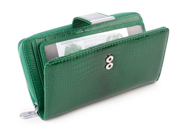Duży portfel damski lakierowany butelkowa zieleń Jennifer Jones