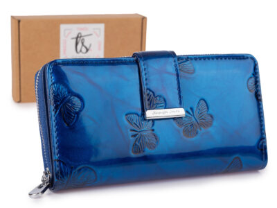 Duży portfel damski niebieski lakierowany Jennifer Jones