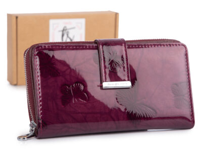 Bordowy portfel damski lakierowany Jennifer Jones duży RFID