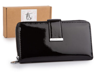 Czarny poziomy lakierowany portfel damski skórzany Jennifer Jones