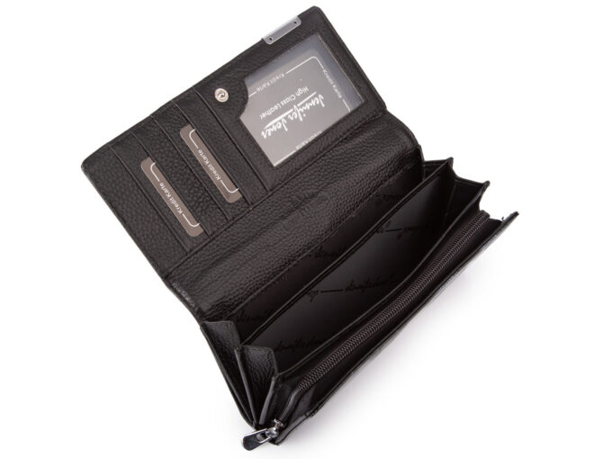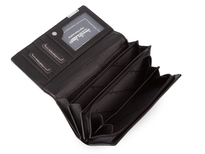 - Łącznie portfel posiada 16 kieszonek na karty płatnicze i dokumenty wielkości dowodu osobistego. W tym dwie kieszonki przezroczyste do włożenia zdjęć bliskich osób.