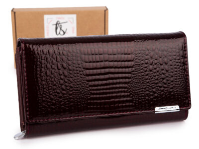 Elegancki duży portfel damski Jennifer Jones z lakierowanej skóry naturalnej RFID burgundowy