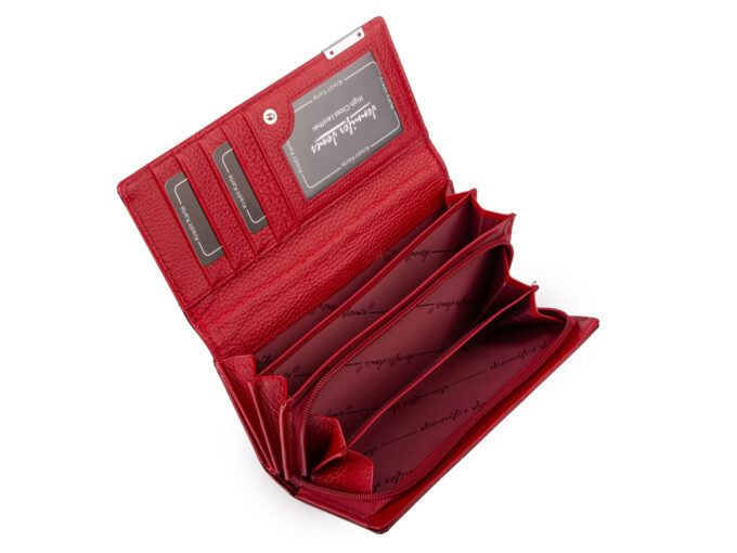 - Łącznie portfel posiada 16 kieszonek na karty płatnicze i dokumenty wielkości dowodu osobistego. W tym dwie kieszonki przezroczyste do włożenia zdjęć bliskich osób.
