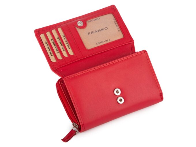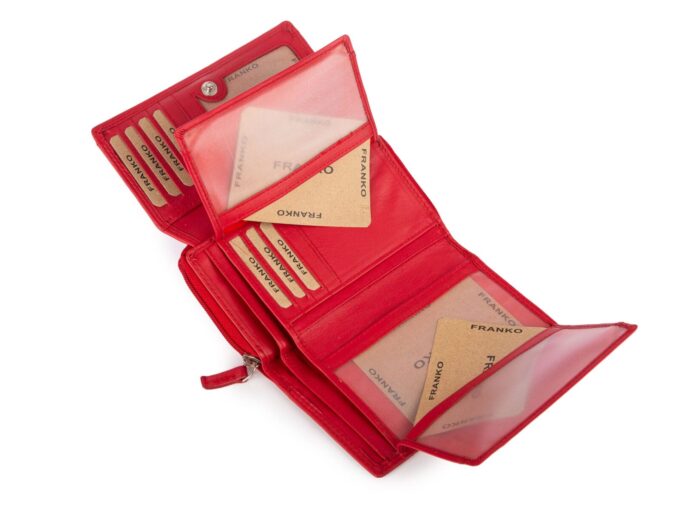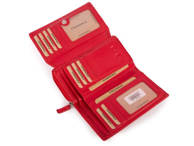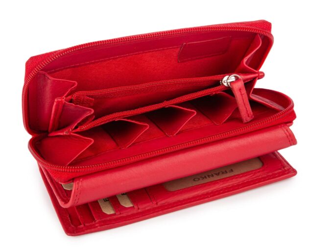 Duży portfel damski z miękkiej skóry naturalnej RFID czerwony Franko