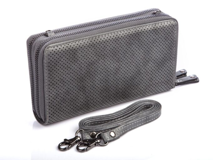 - Pojemny portfel, który może służyć także jako torebka „kopertówka” – w komplecie znajduje się odpinany pasek na ramię.