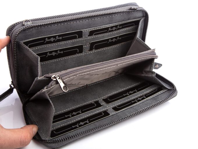 - Akcesoria, Duże portfele damskie, Jennifer Jones, Kopertówki, Małe torebki damskie, Matowe portfele damskie, Portfele damskie Jennifer Jones, Portfele damskie typu piórnik, Portfele damskie w pudełku, Saszetki na szyję, Szare portfele damskie, Szare torebki damskie, Torby damskie na ramię, Torebki damskie ze skóry ekologicznej, Wieczorowe