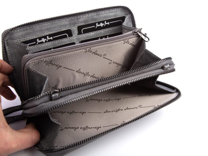 Portfel damski z kieszenią na telefon i paskiem na ramię szary Jennifer Jones