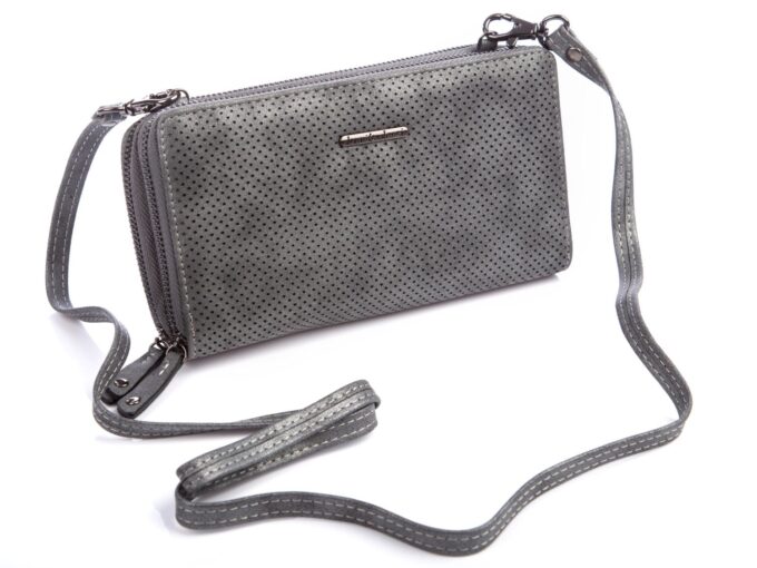 Duży portfel damski z paskiem na ramię szary Jennfier Jones