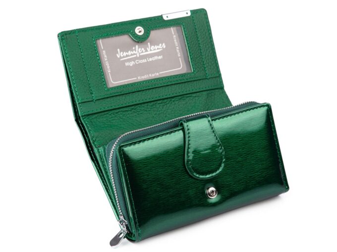 Duży portfel damski zielony butelkowy lakierowany metaliczny Jennifer Jones