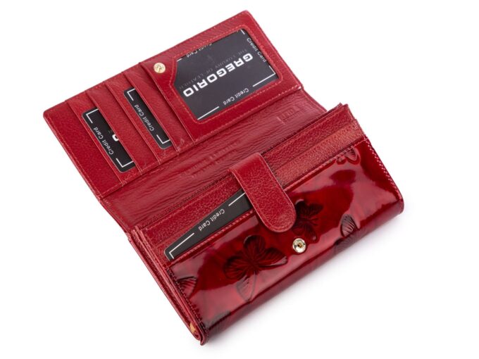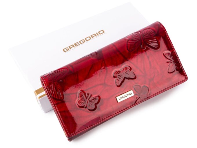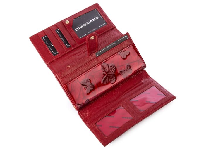 Duży poziomy portfel damski czerwony z wzorem w motylki Gregorio RFID