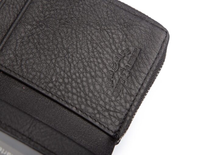 - Portfel posiada ochronę kart zblizeniowych RFID. Chroni ona dostęp do kart znajdujących się wewnątrz portfela z zewnątrz.