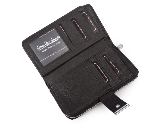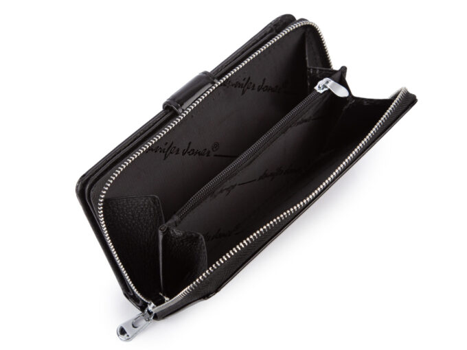 Poziomy duży czarny skórzany portfel damski Jennifer Jones