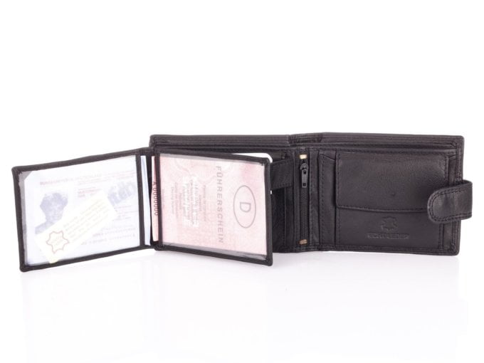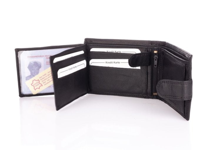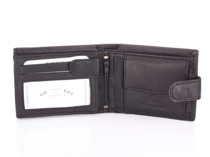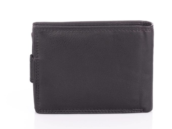 • Duży poziomy portfel męski skórzany zamykany na zatrzask czarny