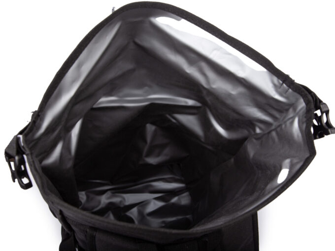 - Wnętrze komory głównej plecaka jest w całości zabezpieczone dookoła wodoodpornym materiałem.