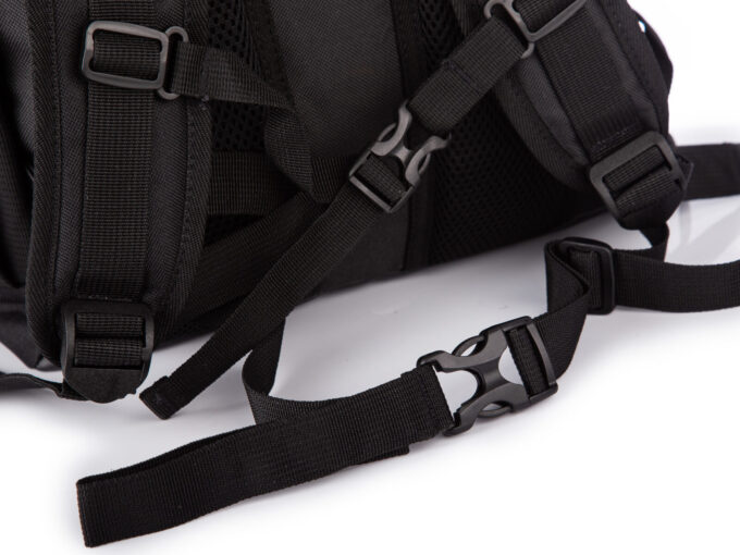 - Tył plecaka, oraz szelki od spodu wyłożono grubą pianką dystansową z „oddychającą” siateczką ograniczającą pocenie.
