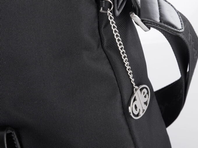 Innowacyjne połączenie skóry ekologicznej i wytrzymałego materiału sprawia, że raportówka cieszy oko przejmującą, błyszczącą czernią, jednocześnie zapewniając najwyższą jakość wykonania i trwałość jej użytkowania przez długie lata. Design torebki wyróżnia się dodatkowo innymi elementami stanowiącymi komplementarną całość. Zamykana na magnes klapka uzupełniona została delikatnie wkomponowanym logiem producenta, a metalowy symbol Jennifer Jones dołączony został również w formie eleganckiego łańcuszka. Elementy mechaniczne, mocujące pasek na ramię, wykonano również ze stali szlachetnej, gwarantując ich trwałość przez długi czas.