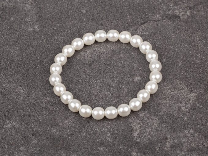 Elastyczna bransoletka z pereł Preciosa w kolorze białym. Wykonana z gładkich pereł szklanych Preciosa o subtelnym połysku, została nawleczona na elastyczną, trwałą gumkę, dzięki czemu łatwo dopasowuje się do nadgarstka i zapewnia komfort noszenia przez cały dzień.