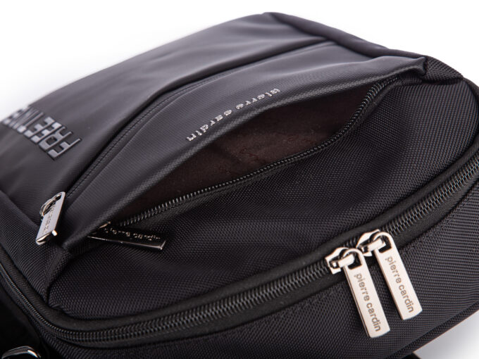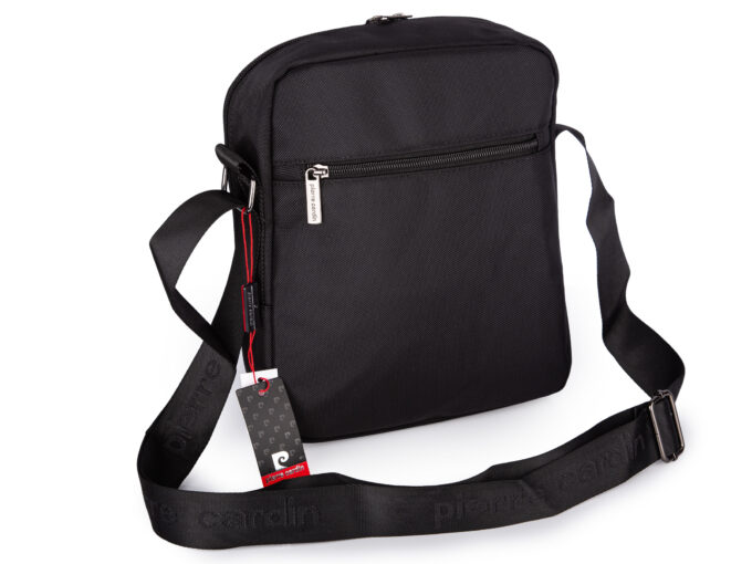 Elegancka czarna materiałowa torba męska na ramię Pierre Cardin