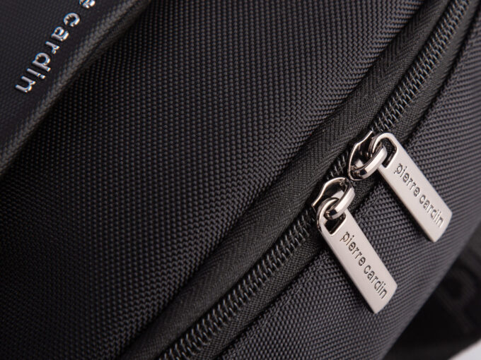 - Z przodu znajdują dwie podręczne kieszenie zapinane za pomocą zamków błyskawicznych. Jedna zapinana suwakiem „na skos”, druga „ukryta” subtelnie w górnej części torby i głęboka.
