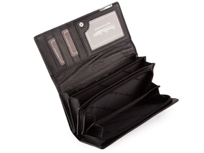 - Łącznie portfel posiada 16 kieszonek na karty płatnicze i dokumenty wielkości dowodu osobistego. W tym dwie kieszonki przezroczyste do włożenia zdjęć bliskich osób.