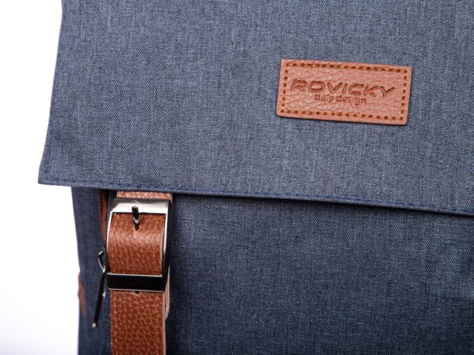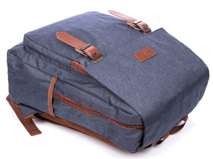 - Z przodu plecaka znajduje się gustowna klapka z dwoma paseczkami wykonanymi ze skóry ekologicznej.