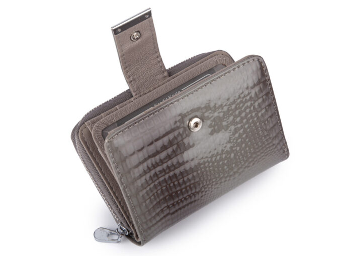 Elegancki szary portfel skórzany Jennifer Jones lakierowany