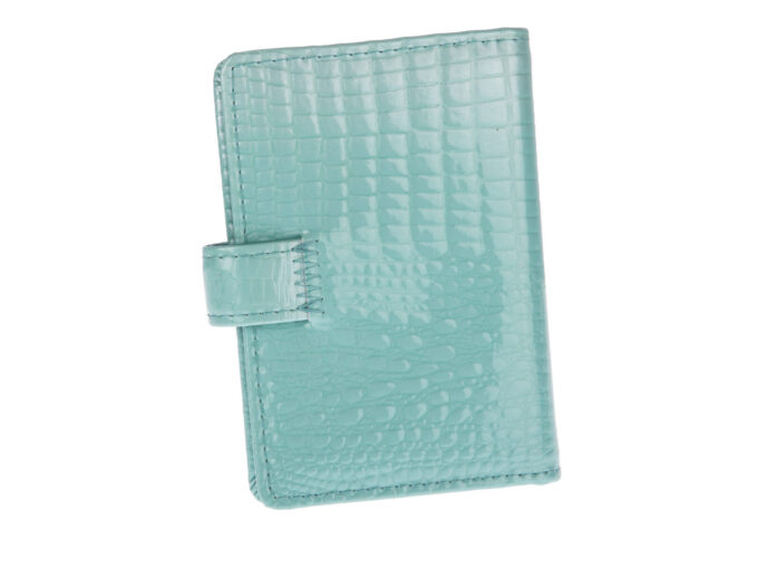 - Turkusowy wizytownik (Etui na dokumenty i karty) wykonany z lakierowanej skóry naturalnej,