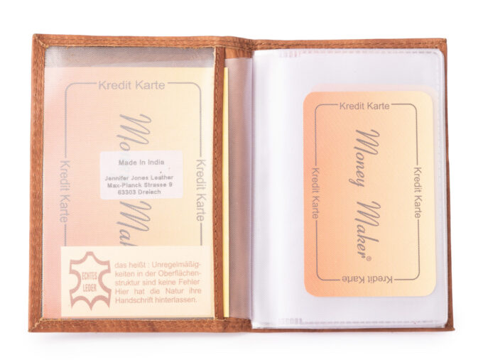 Etui na dokumenty skórzane w kolorze jasnobrązowym marki Money Maker