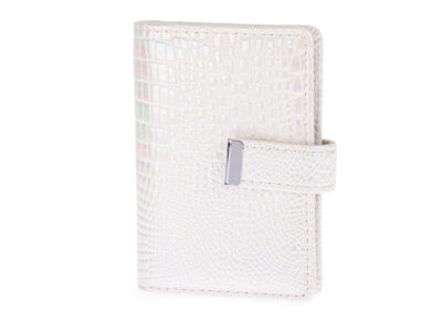 Eleganckie Etui Na Karty Damskie Lakierowane w Kolorze Białym Perłowym