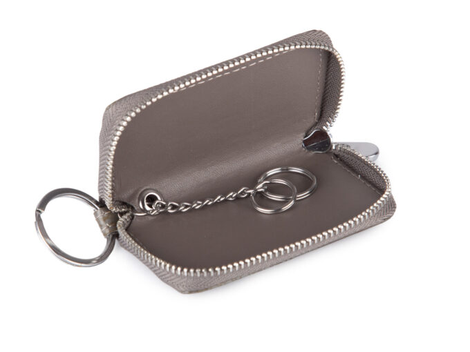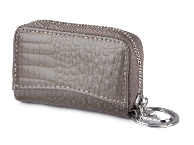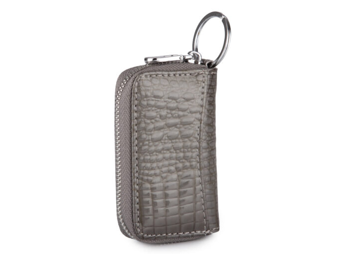 Etui na klucze damskie lakierowane na zamek szare kroko
